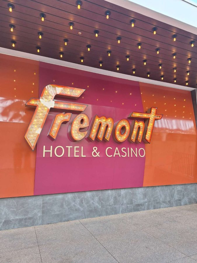 YESCO headed to Fremont Hotel to repair a broken sign face and trim cap on their Fremont sign at the Food Hall. We’re proud to help keep this Vegas classic looking sharp and inviting!